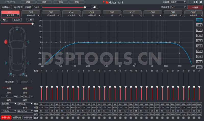 中道NakamichiDSP调音软件下载 支持中道FDSD270/370DSP电脑调音 声明:本站所有文章,如无特殊说明或标注,均为本站原创发布。任何个人或组织,在未征得本站同意时,禁止复制、盗用、采集、发布本站内容到任何网站、书籍等各类媒体平台。如若本站内容侵犯了原著者的合法权益,可联系我们进行处理。